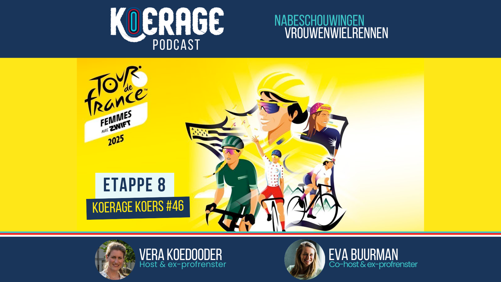 Voormalig professioneel wielrensters Vera Koedooder en Eva Buurman troffen elkaar na de zesde etappe van de Tour de France Femmes online voor Koerage Koers #44! Deze week zijn er bijna iedere dag nabeschouwingen en dit wordt mede mogelijk gemaakt door Liv Cycling Benelux! Vergeet niet mee te doen met de te gekke winactie: Luister in onze Tour de France Femmes podcastshows hoe je een originele witte LIV jongerentrui kunt winnen. Gesigneerd door de winnares! Ook zitten de vaste rubrieken ‘Koerage Moment’ en de ‘Voorspellingen’ er weer in. Veel luisterplezier!