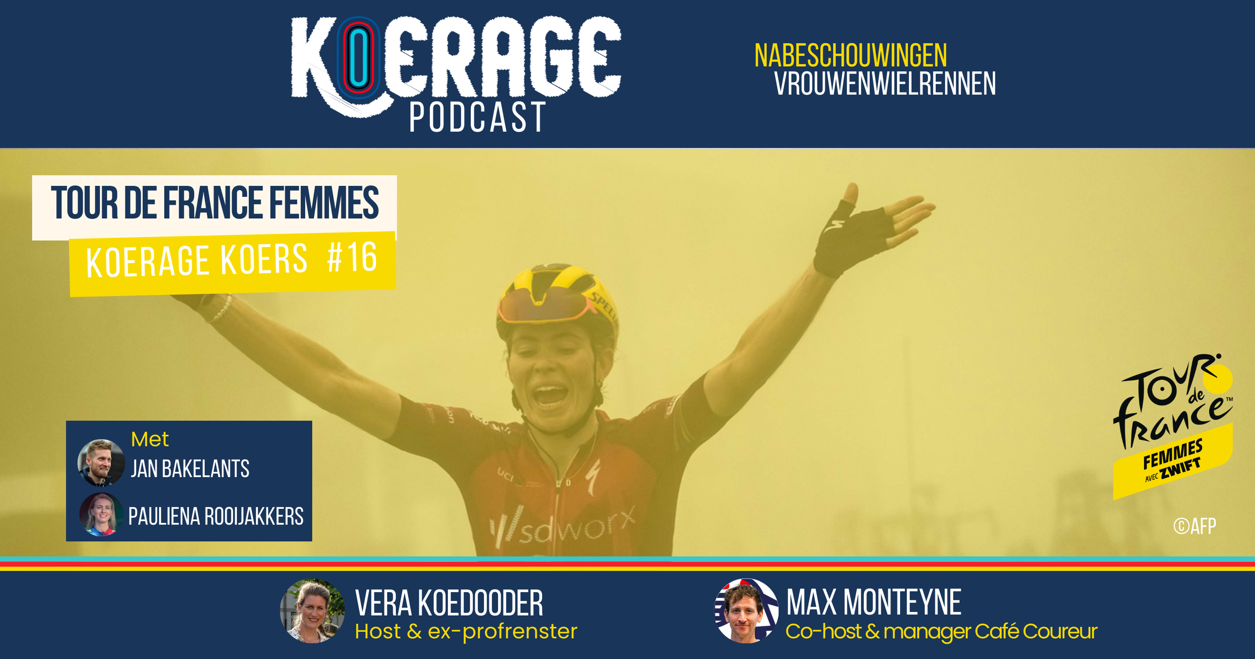De Tour de France Femmes avec Zwift zit erop. Wat was het een een fantastische week met een prachtig slotweekend op de Tourmalet en de tijdrit in Pau! In een extra lange aflevering praat Vera Koedooder in Café Coureur over de laatste dagen na met Café Coureur uitbater en voormalig triatleet Max Monteyne, die Ine Beyen deze keer vervangt als co-host. Ze bellen met niemand minder dan voormalig profwielrenner, ritwinnaar in de Tour de France, gele trui drager en Sporza analist Jan Bakelants. En ze nemen ook de Tour door met Pauliena Rooijakkers, profwielrenster bij Team Canyon-Sram en ploeggenoot van Kasia Niewiadoma, de nummer 3 in het eindklassement en winnares van de bolletjestrui in de Tour.